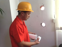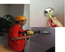 步驟七:根據(jù)標(biāo)記開出通風(fēng)孔并測量墻體厚度